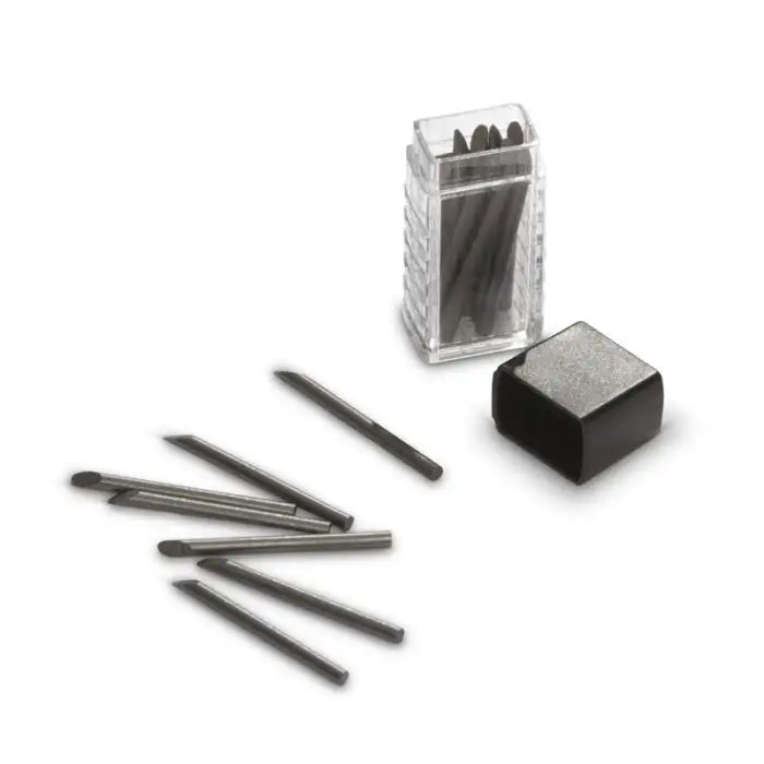 These replacement compass tips are suitable for both our of our compasses (20592140 and 20592130). The box contains 15 graphite tips 2B with a diameter of 0.07 inch (2 mm) and a length of 0.98 inch(25 mm). The plastic box is provided with a piece of sandpaper 0.39 x 0.86 inch (10x22 mm). Set 15 Pieces