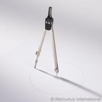 A small compass with an adjustable leg, rounded lead insert and solid needle tip. The compass comes in a plastic molded case which contains a lead holder. Additional leads are also available. Steel, maximum circular arc diameter: approx. 14.17 inches (approx. 360 mm), with spare leads. Extra spare parts also available.