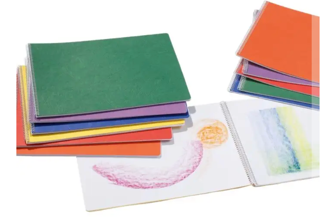 1 book, spiral bound, 32 pages, landscape format, 12.6 x 9.45 inches (32x24 cm), blank, with onion skin, 6 colors available.